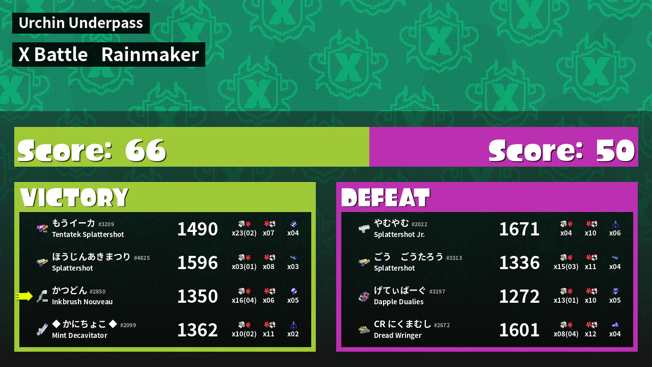 | Medals | #1 Splat Assister #1 Rainmaker Stopper #1 Ground Traveler |
