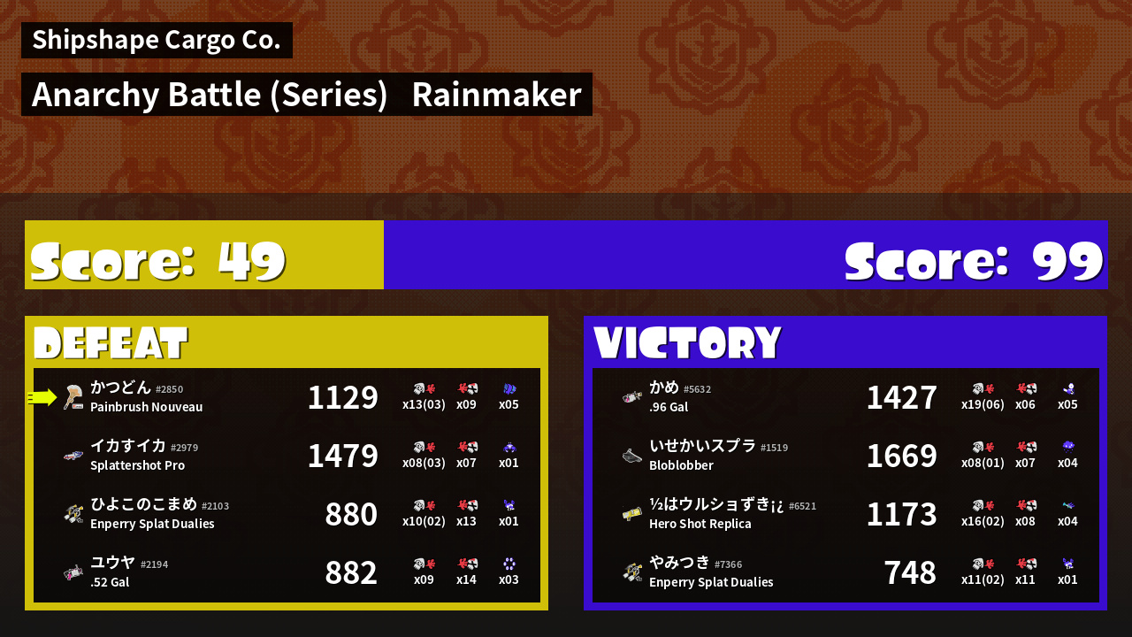 Kills / Deaths | 10 + 3 / 9 > Kill Ratio: 1.11 | ||