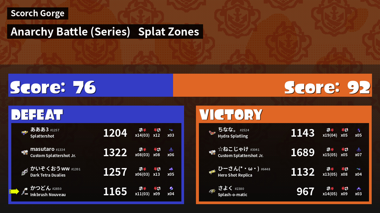Results of かつどん's Battle
