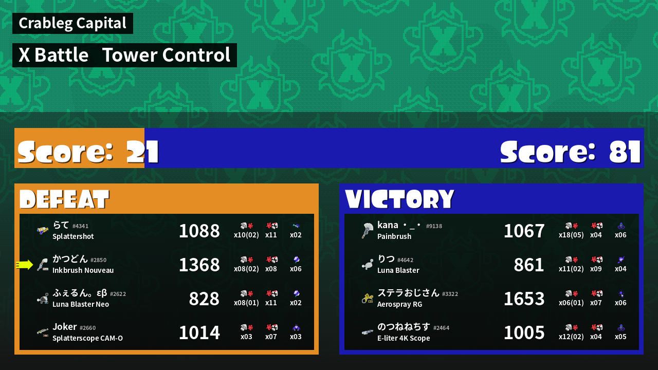 | Medals | #1 Turf Inker #1 Splat Assister #1 Tower Stopper |
