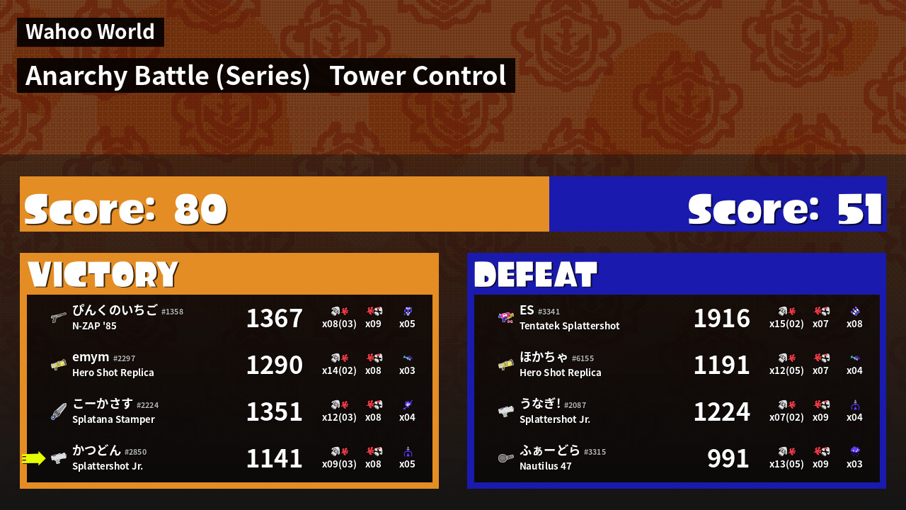 Results of かつどん's Battle