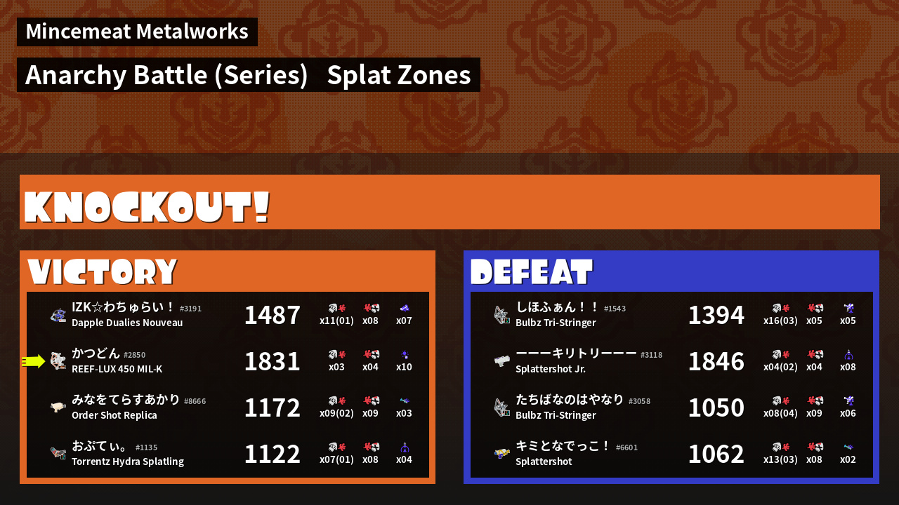 Results of かつどん's Battle