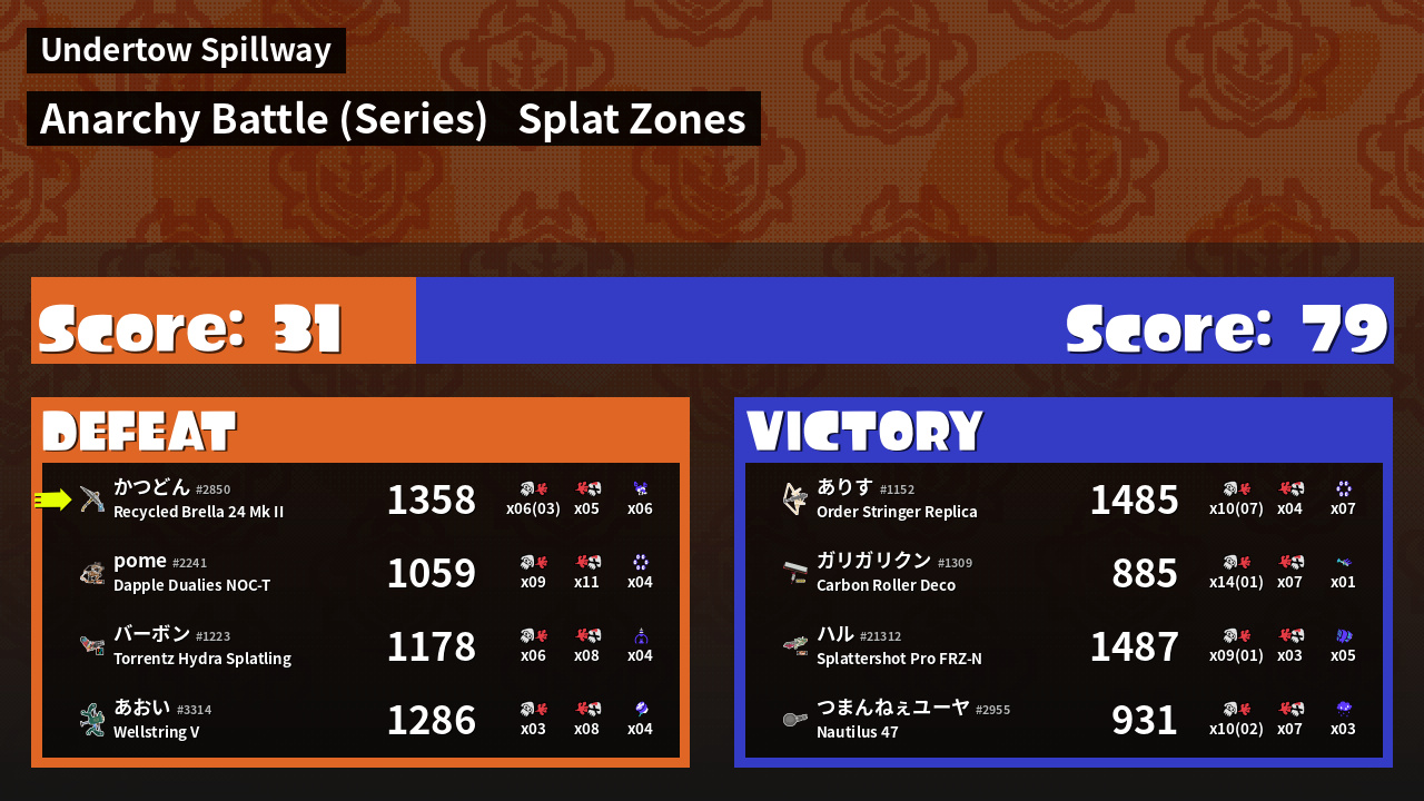 | Mode | Splat Zones - Anarchy Battle (Series) |