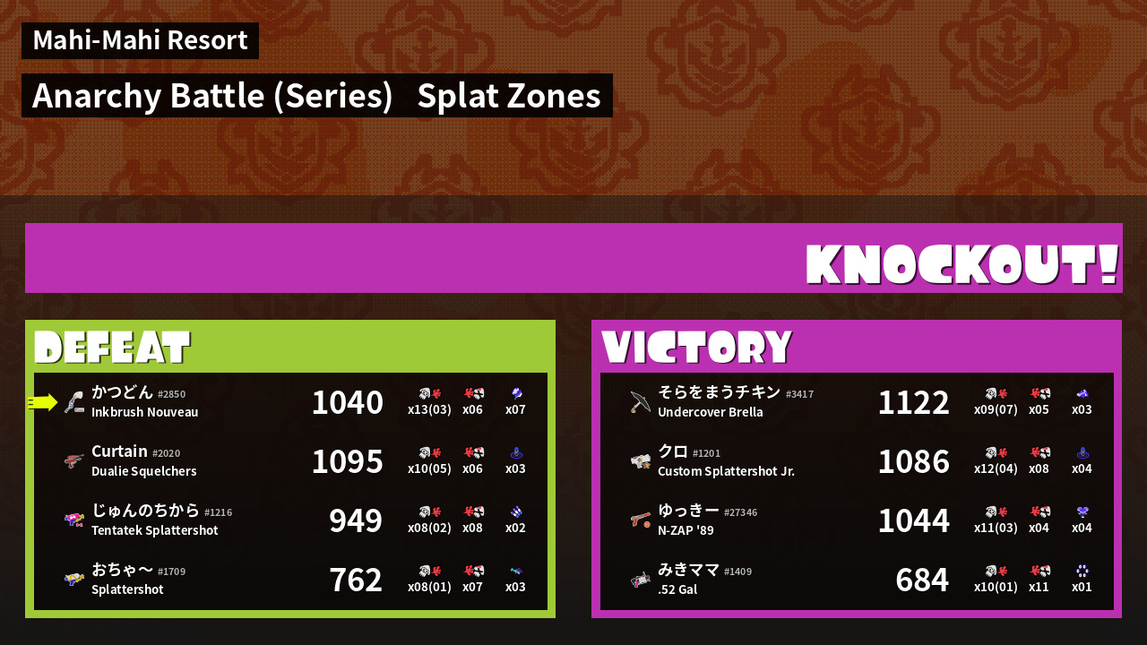 Results of かつどん's Battle