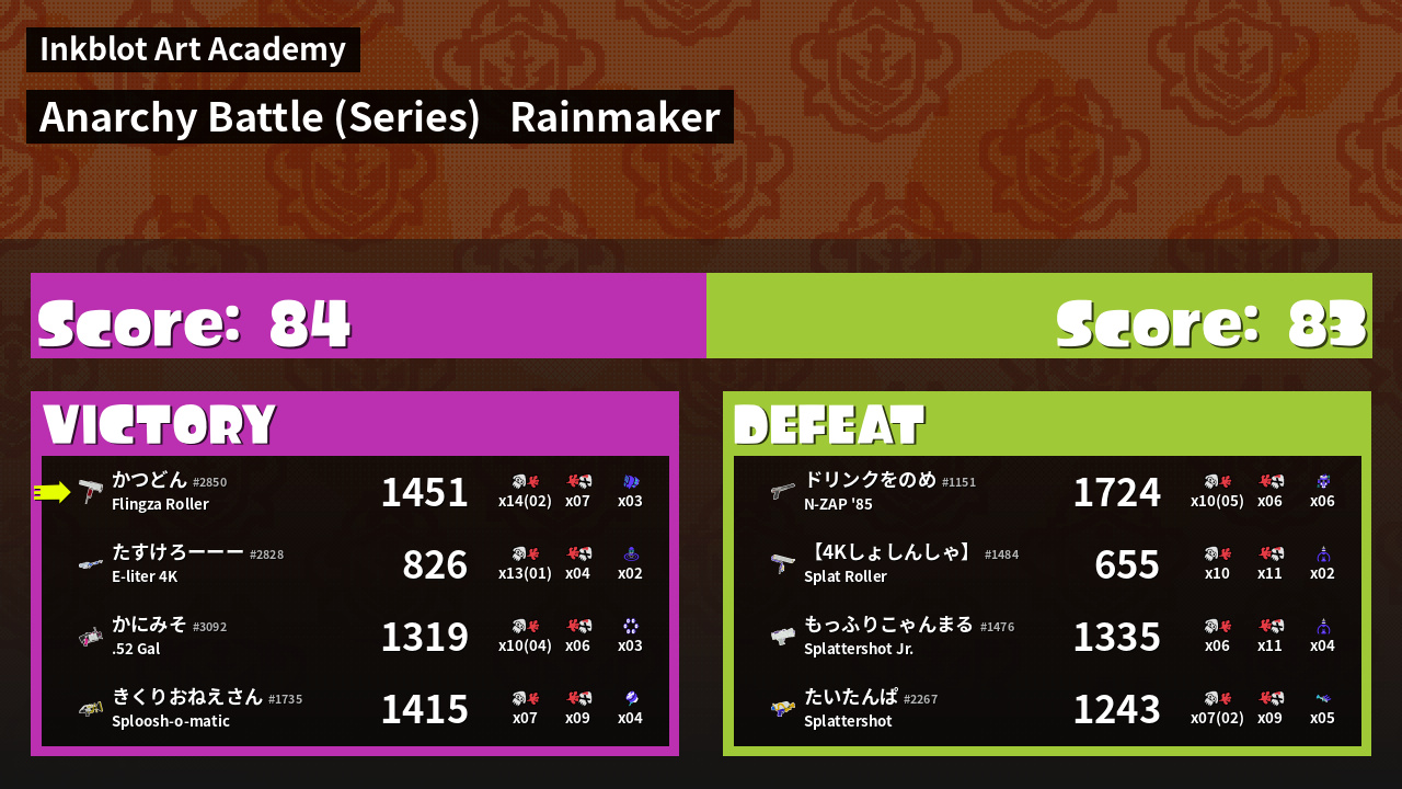 Results of かつどん's Battle