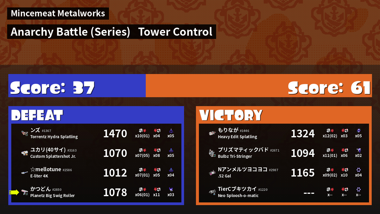 Results of かつどん's Battle