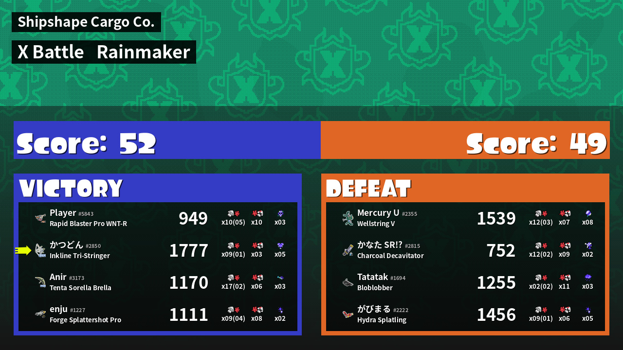 | Weapon | Inkline Tri-Stringer ( Sprinkler / Super Chump) |