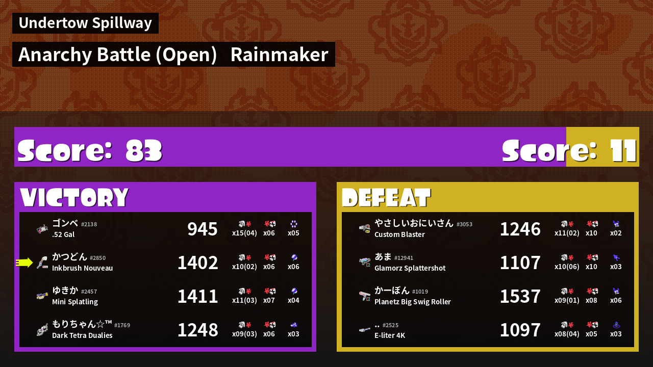 | Mode | Rainmaker - Anarchy Battle (Open) |