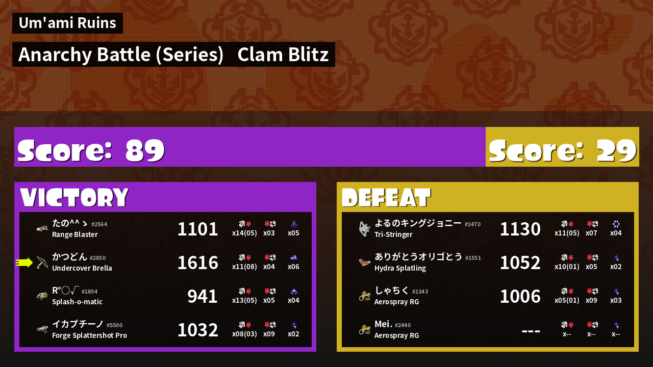 | Mode | Clam Blitz - Anarchy Battle (Series) | ||
