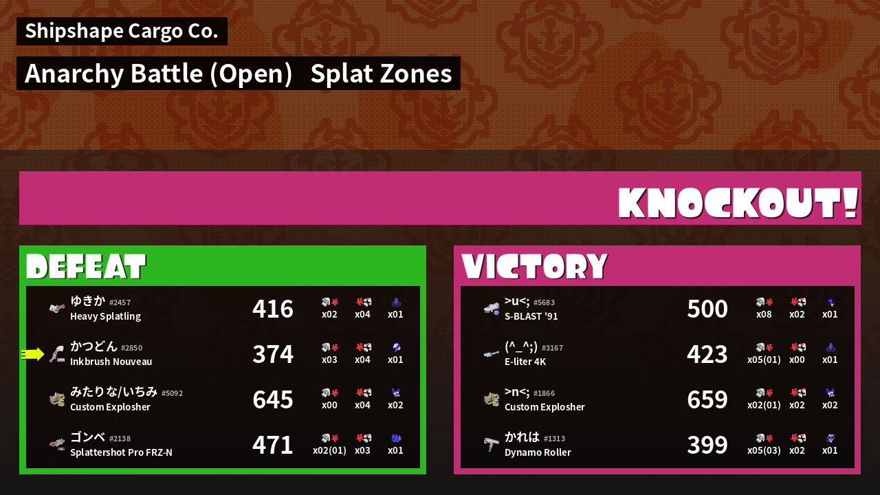 | Mode | Splat Zones - Anarchy Battle (Open) |