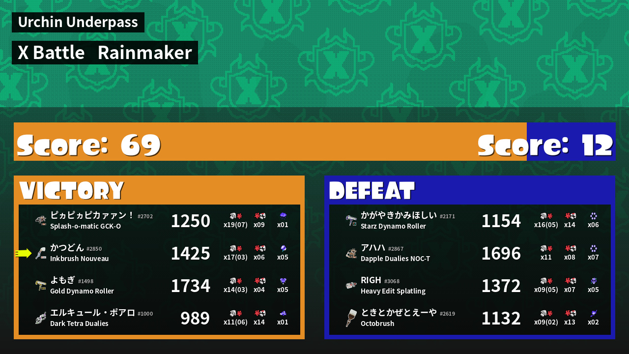 | Mode | Rainmaker - X Battle |