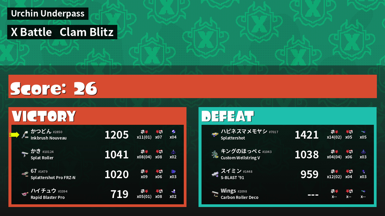 | Mode | Clam Blitz - X Battle |