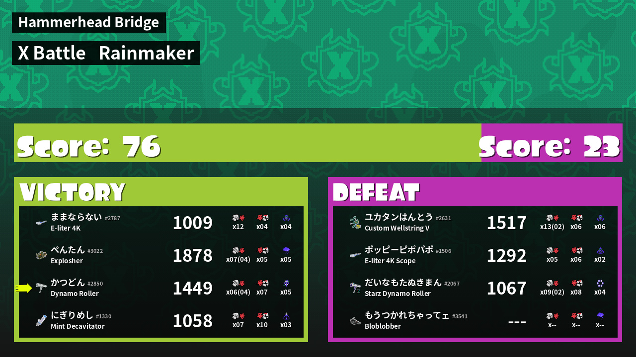 | Weapon | Dynamo Roller ( Sprinkler / Tacticooler) |