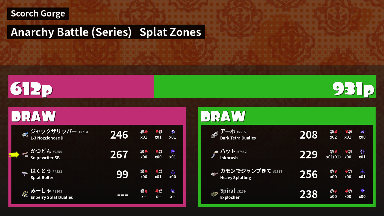 Results of かつどん's Battle