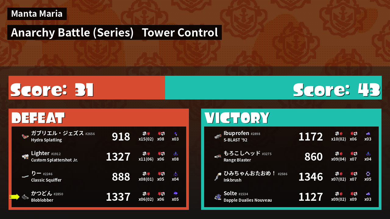 Results of かつどん's Battle