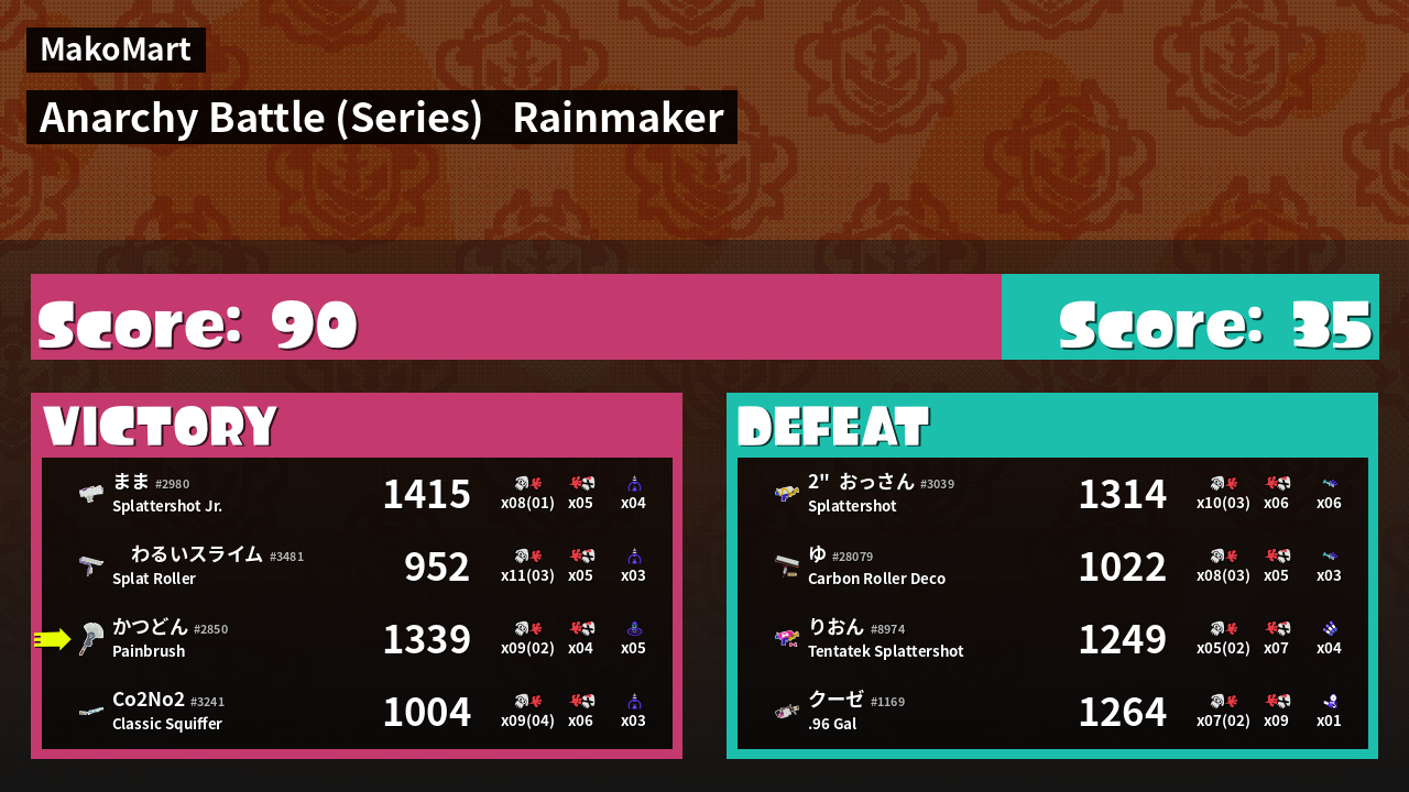 | Mode | Rainmaker - Anarchy Battle (Series) |