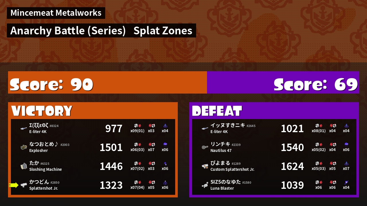 Results of かつどん's Battle