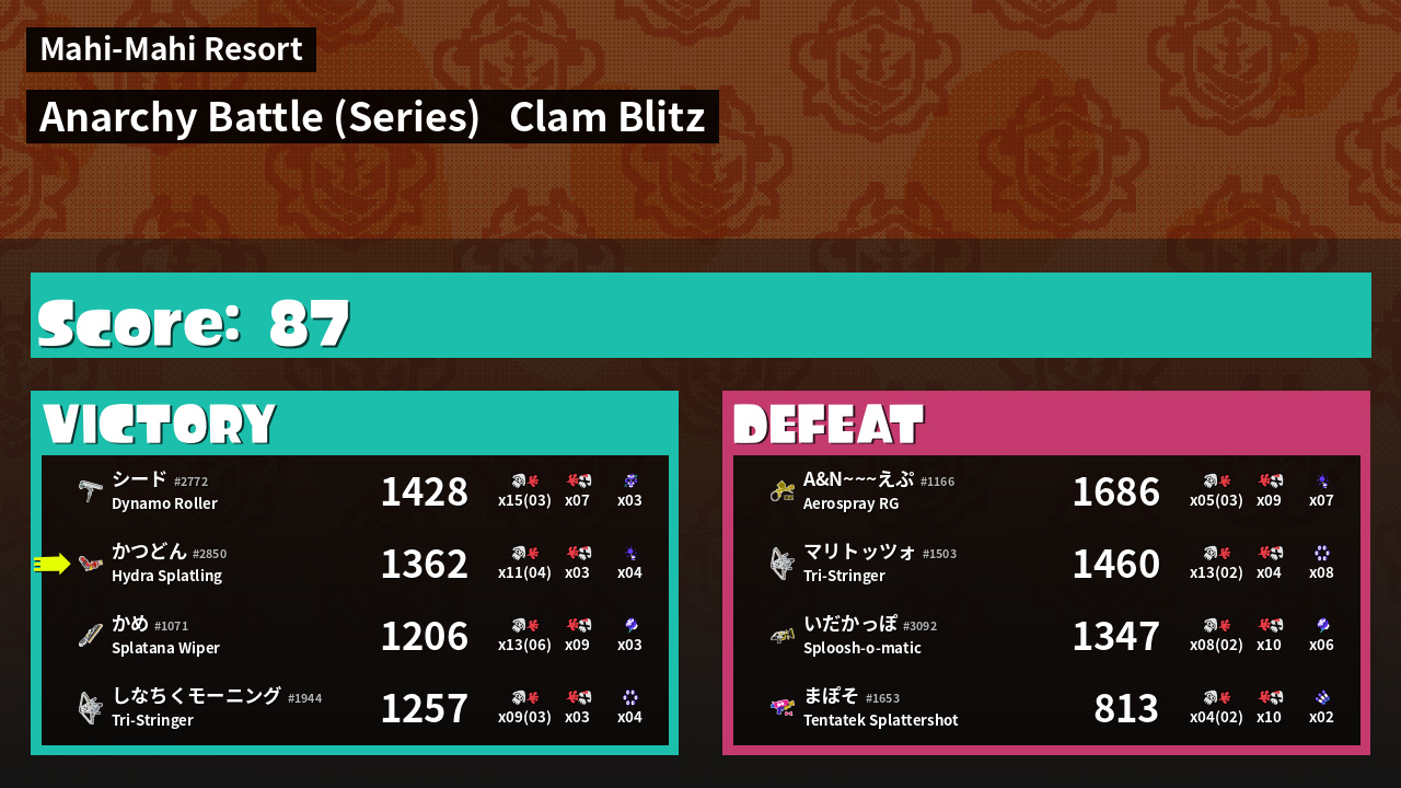 Results of かつどん's Battle