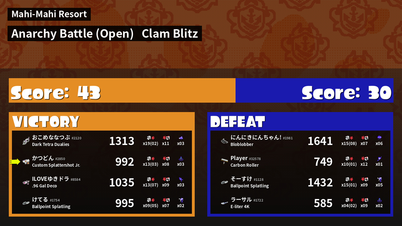 Results of かつどん's Battle