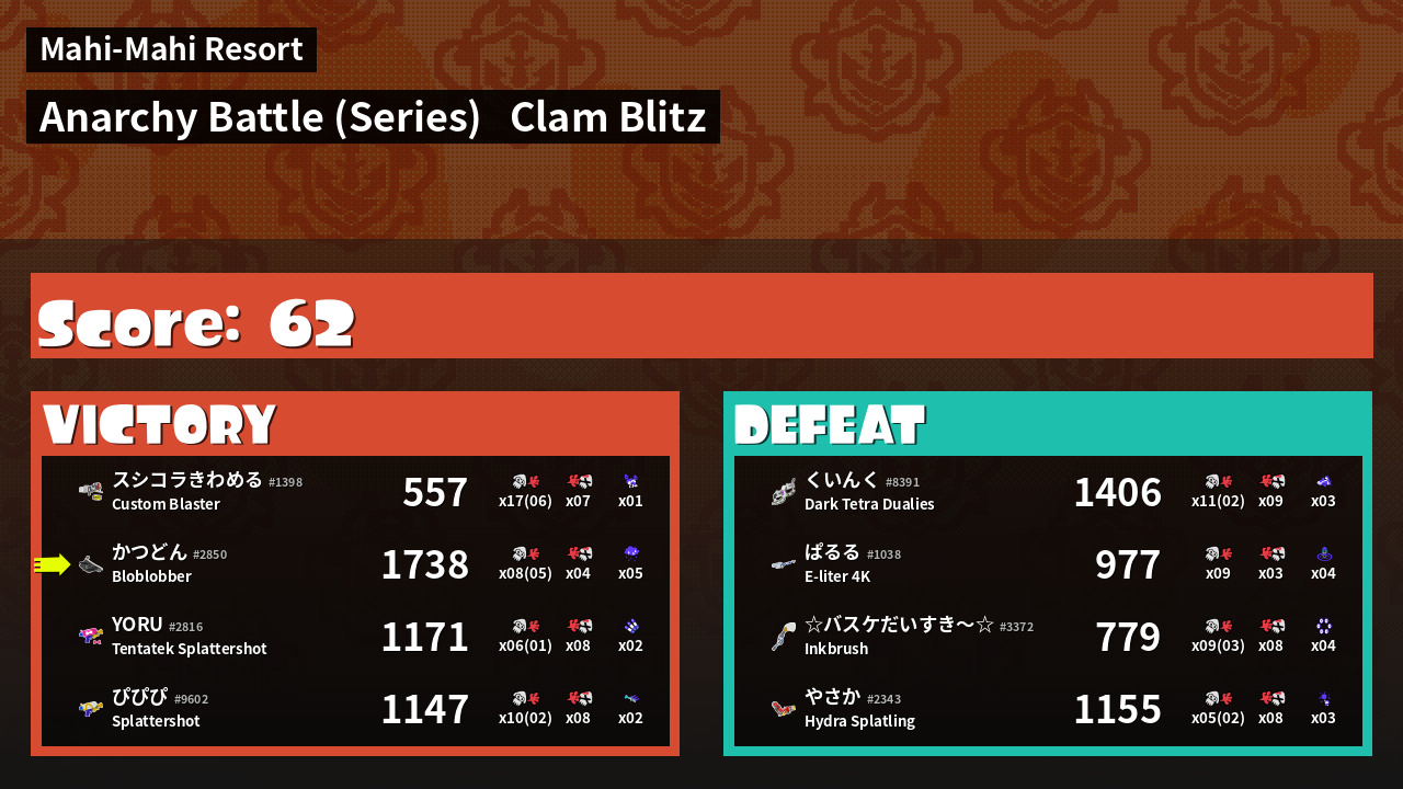 Results of かつどん's Battle