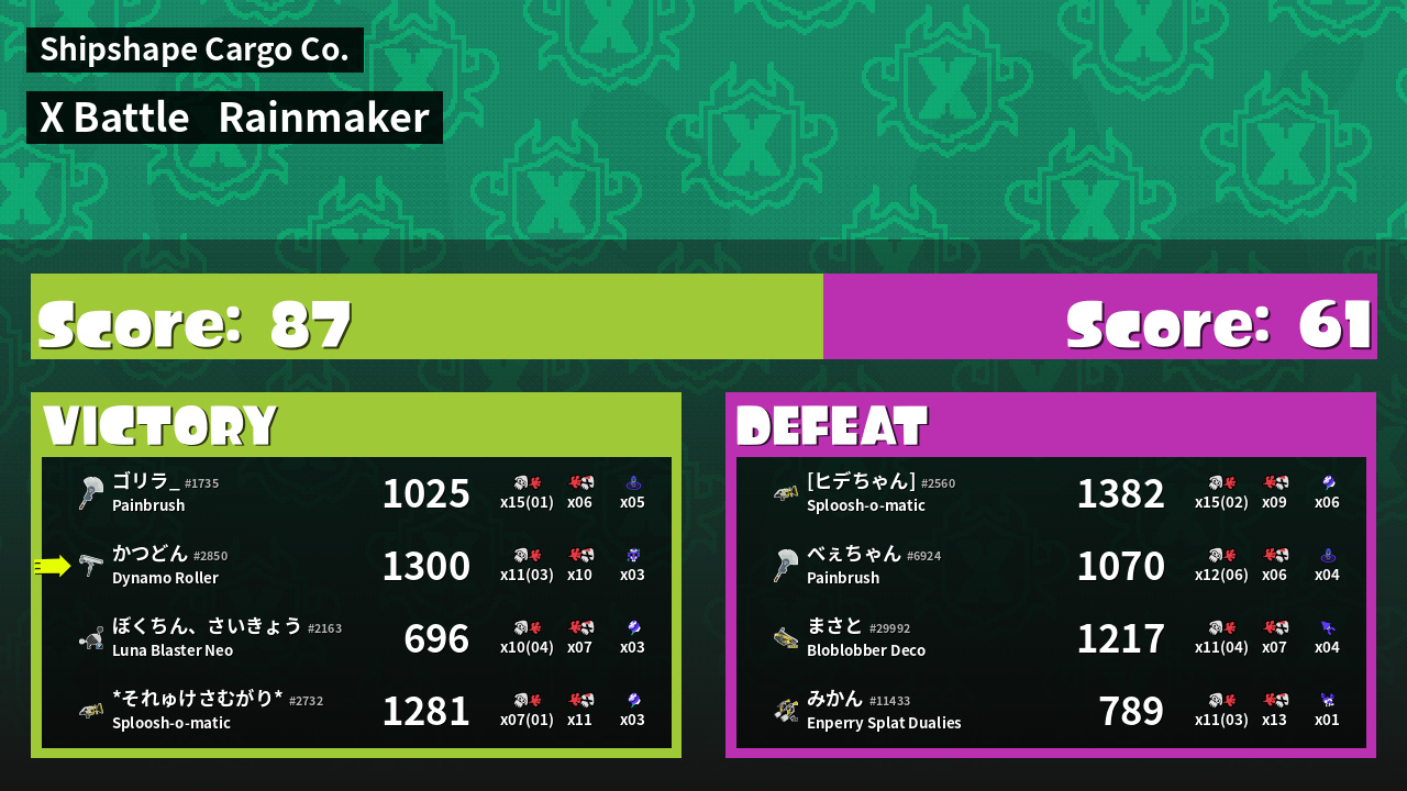 | Weapon | Dynamo Roller ( Sprinkler / Tacticooler) |