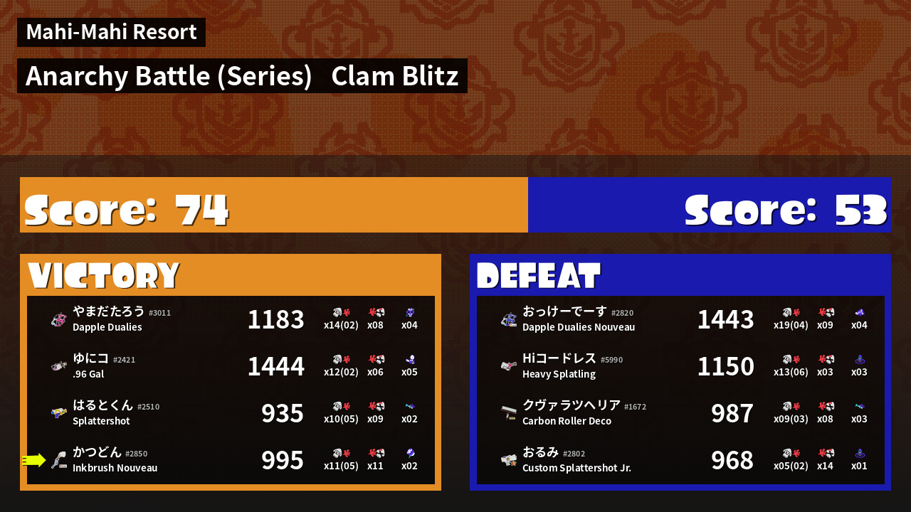 Results of かつどん's Battle