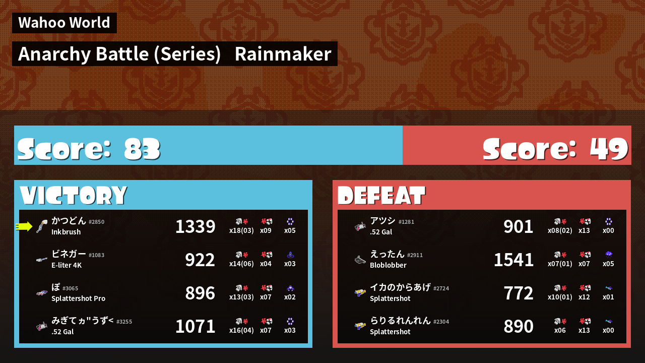 Results of かつどん's Battle