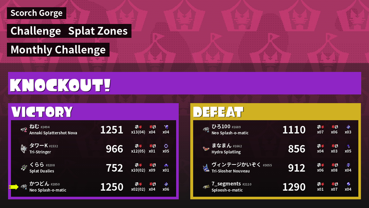 Results of かつどん's Battle