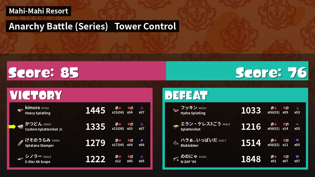 Results of かつどん's Battle