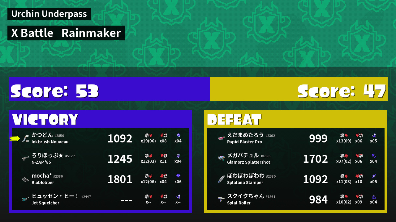 | Medals | #1 Overall Splatter #1 Enemy Splatter #1 Splat Assister |