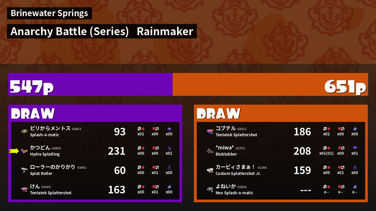 Results of かつどん's Battle