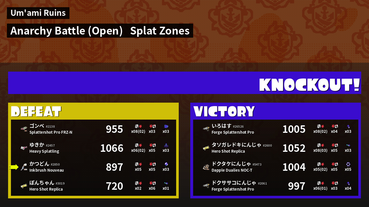 | Mode | Splat Zones - Anarchy Battle (Open) |
