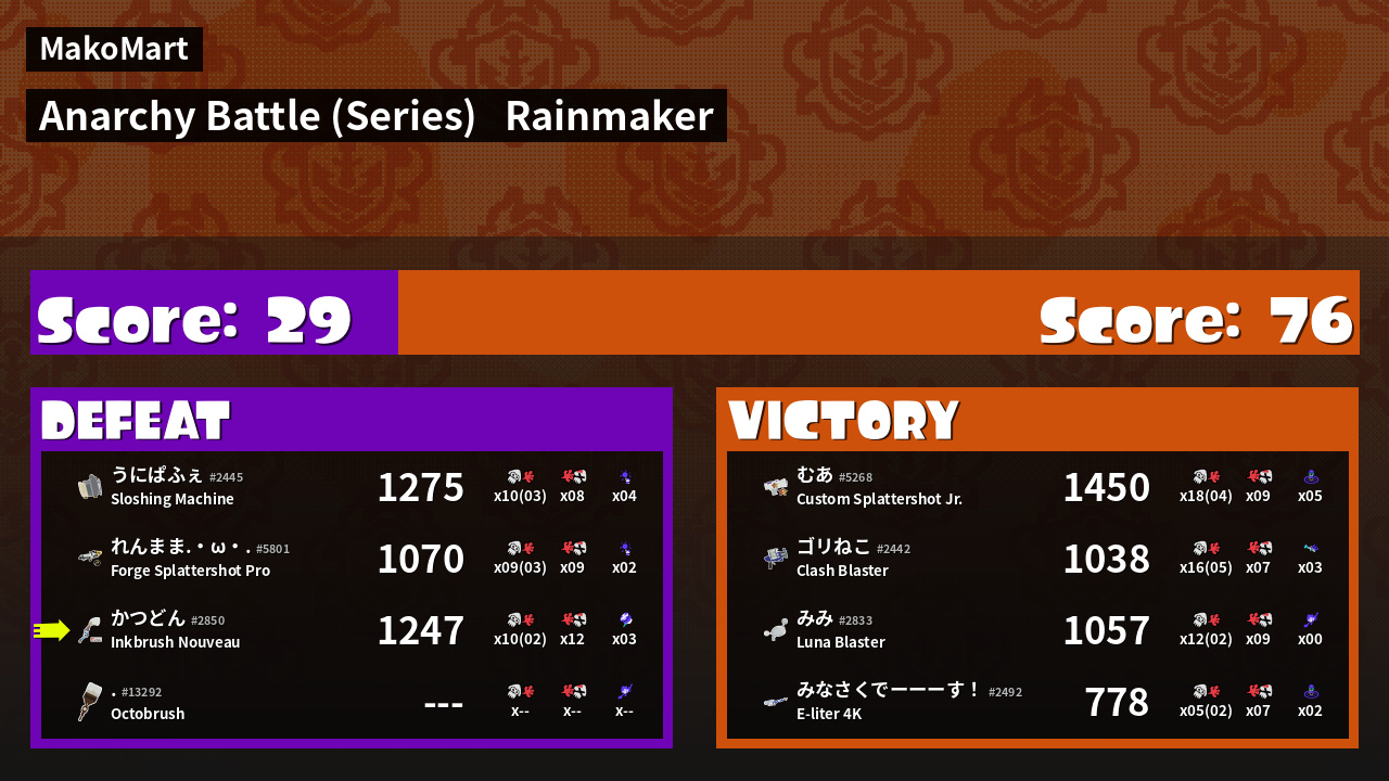 Results of かつどん's Battle