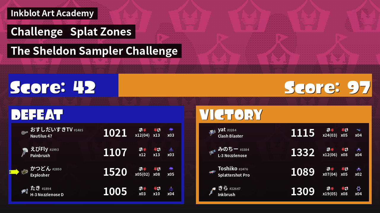 Challenge | The Sheldon Sampler Challenge Make the most of random weapons! | ||