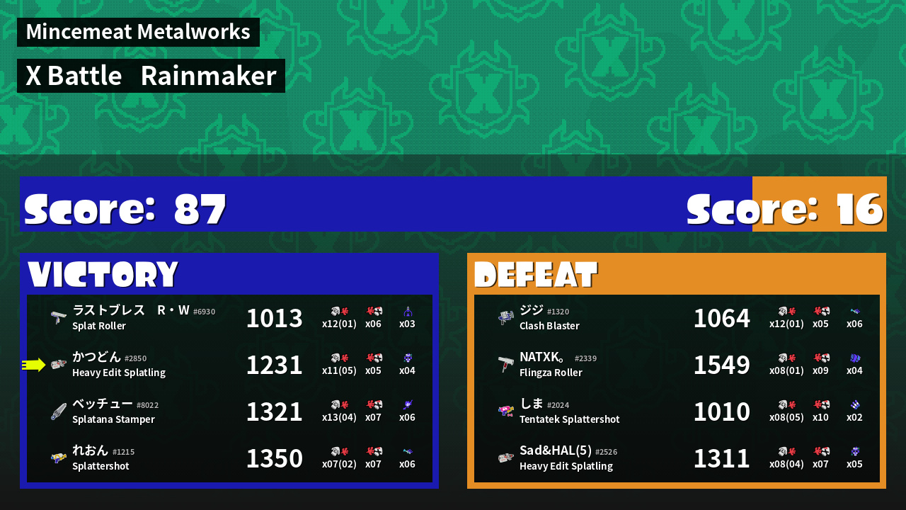 Kills / Deaths | 6 + 5 / 5 > Kill Ratio: 1.20 | ||