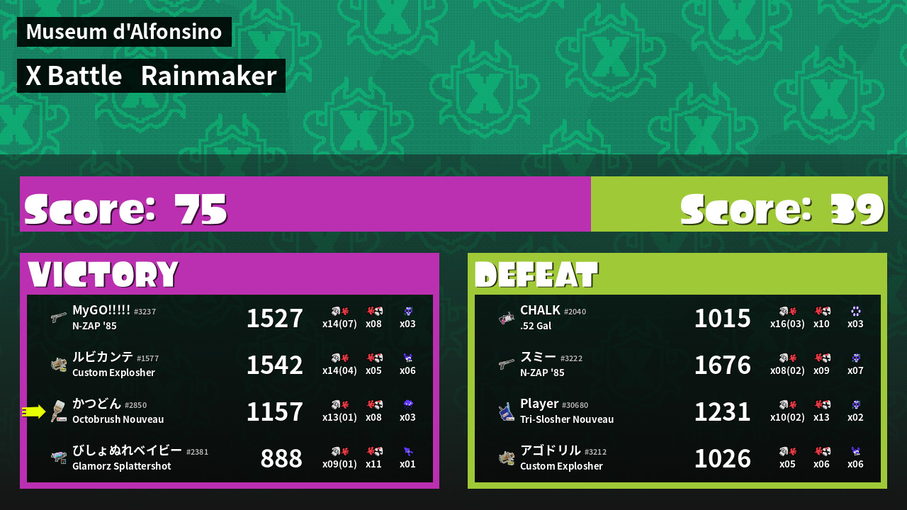 | Medals | #1 Super Jump Spot #1 Enemy Splatter #1 Rainmaker Stopper |