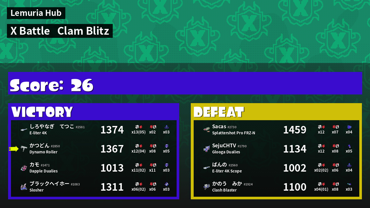 | Mode | Clam Blitz - X Battle |