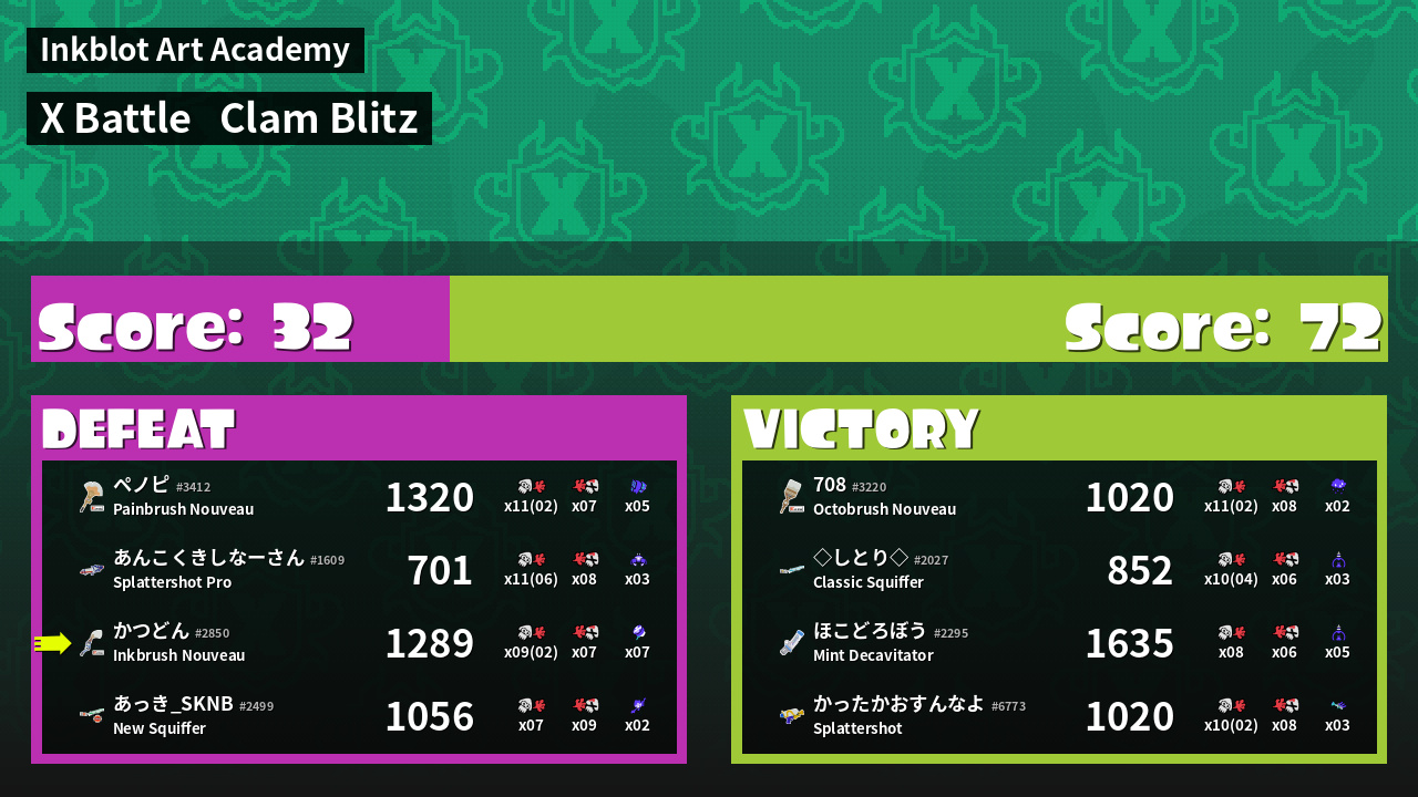 | Mode | Clam Blitz - X Battle |