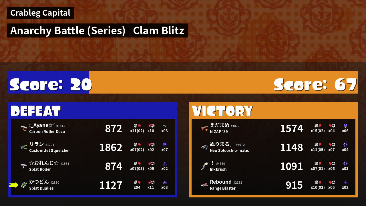 | Mode | Clam Blitz - Anarchy Battle (Series) |