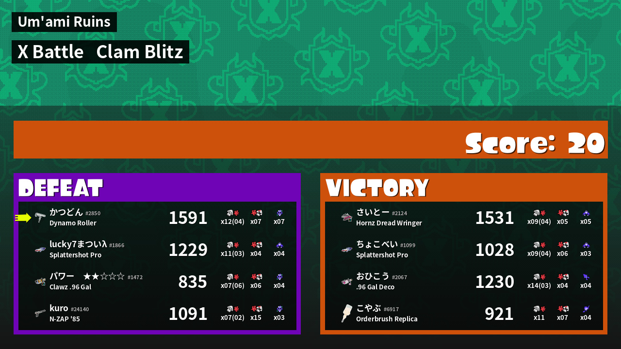 | Weapon | Dynamo Roller ( Sprinkler / Tacticooler) |