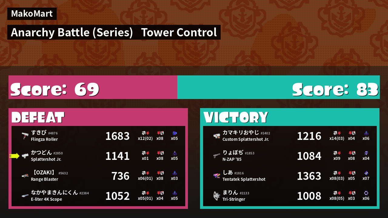 Results of かつどん's Battle