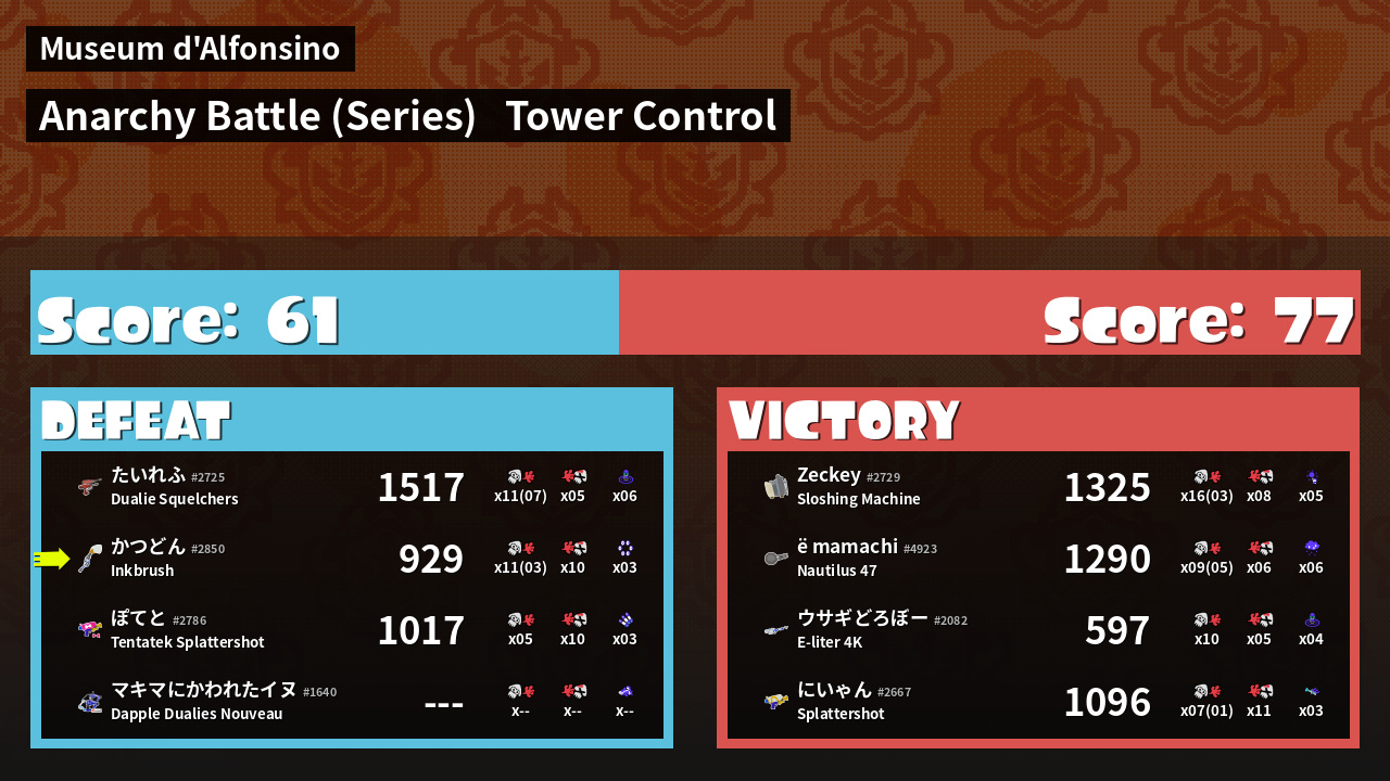 Results of かつどん's Battle