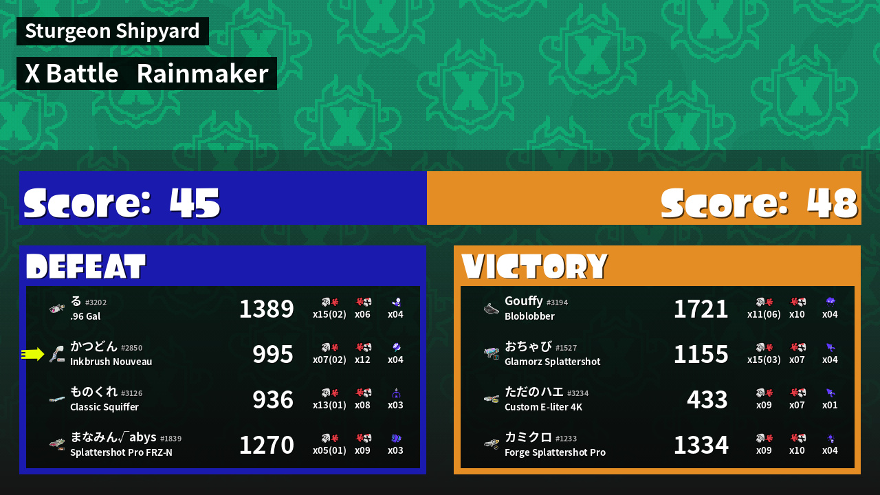 | Mode | Rainmaker - X Battle |