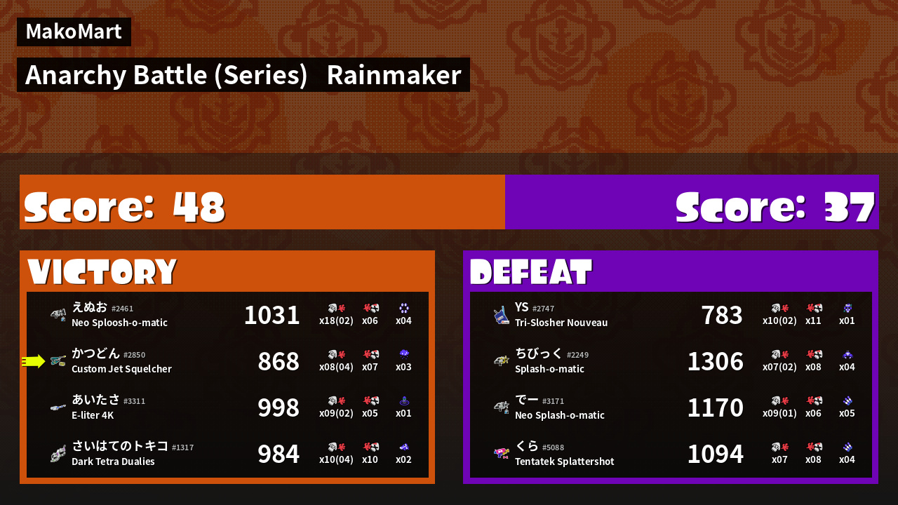 Results of かつどん's Battle
