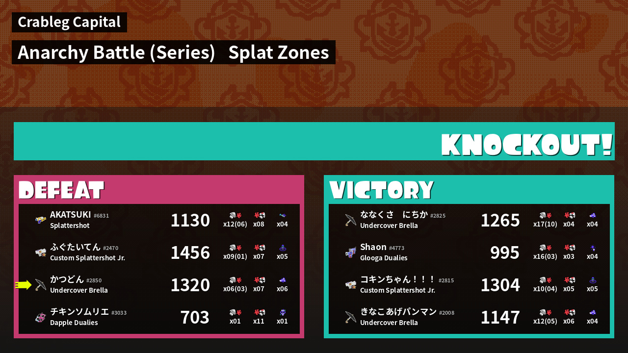 Results of かつどん's Battle