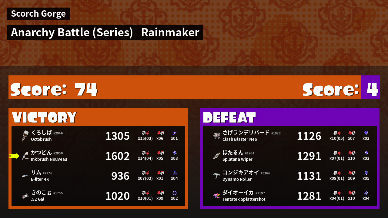 Results of かつどん's Battle