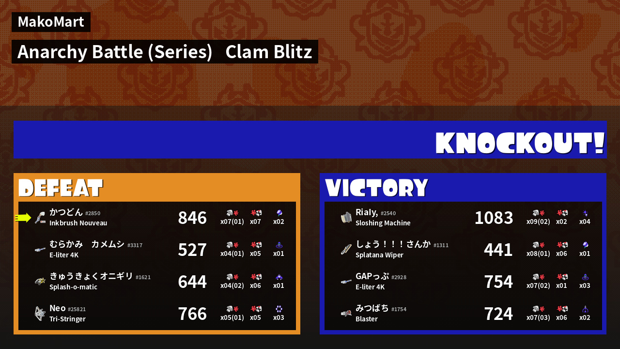 Results of かつどん's Battle