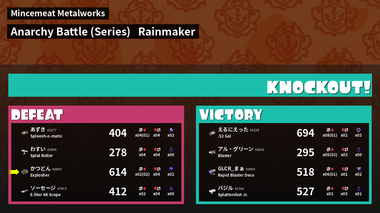 Results of かつどん's Battle