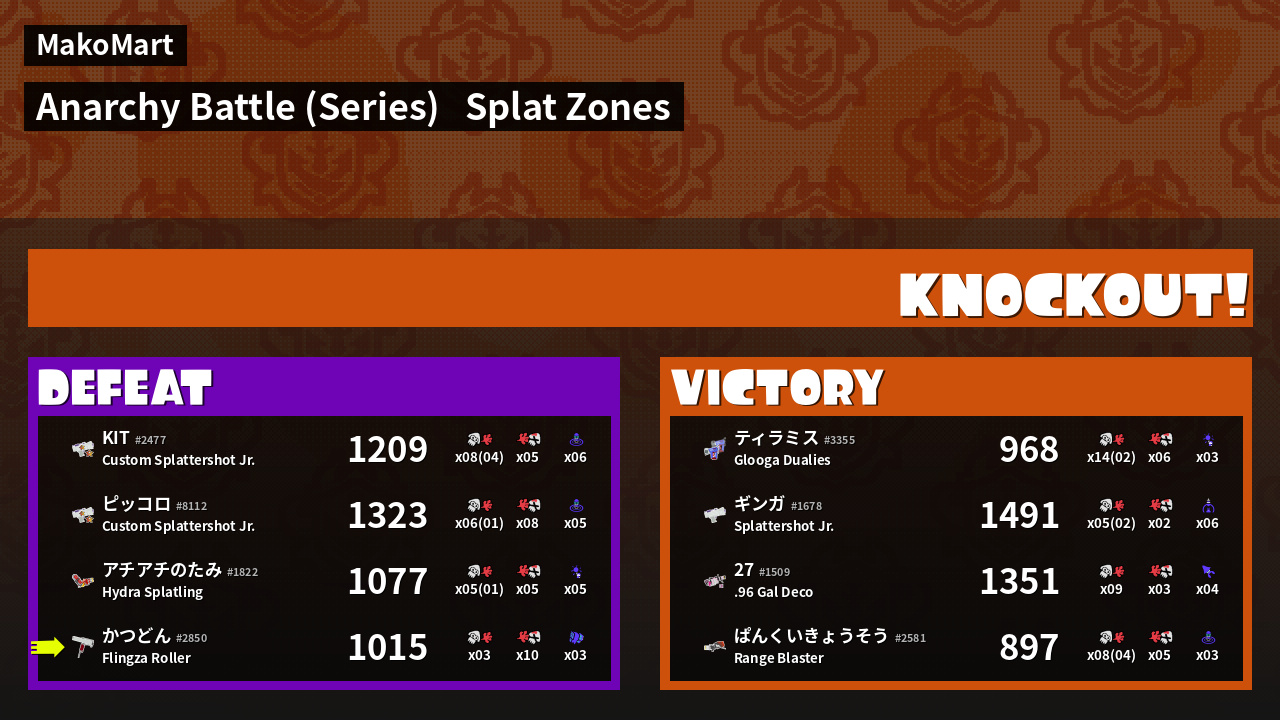 Results of かつどん's Battle