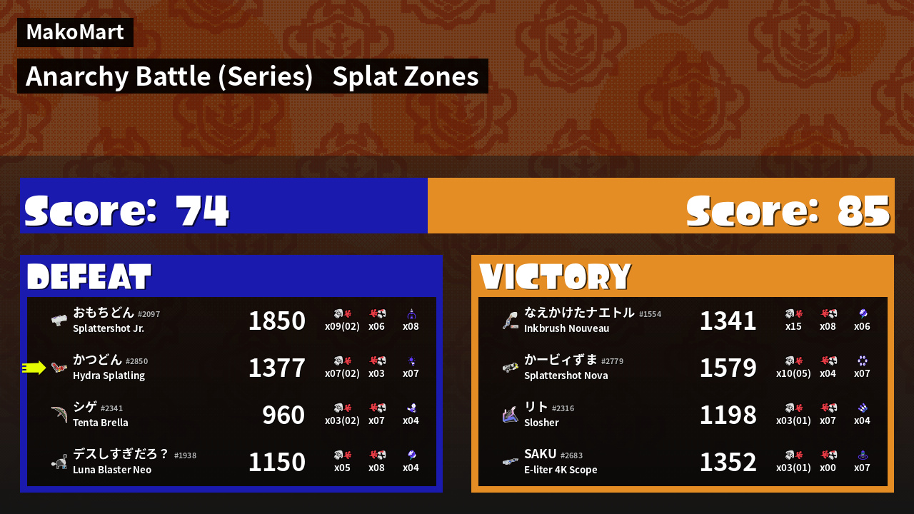 Results of かつどん's Battle